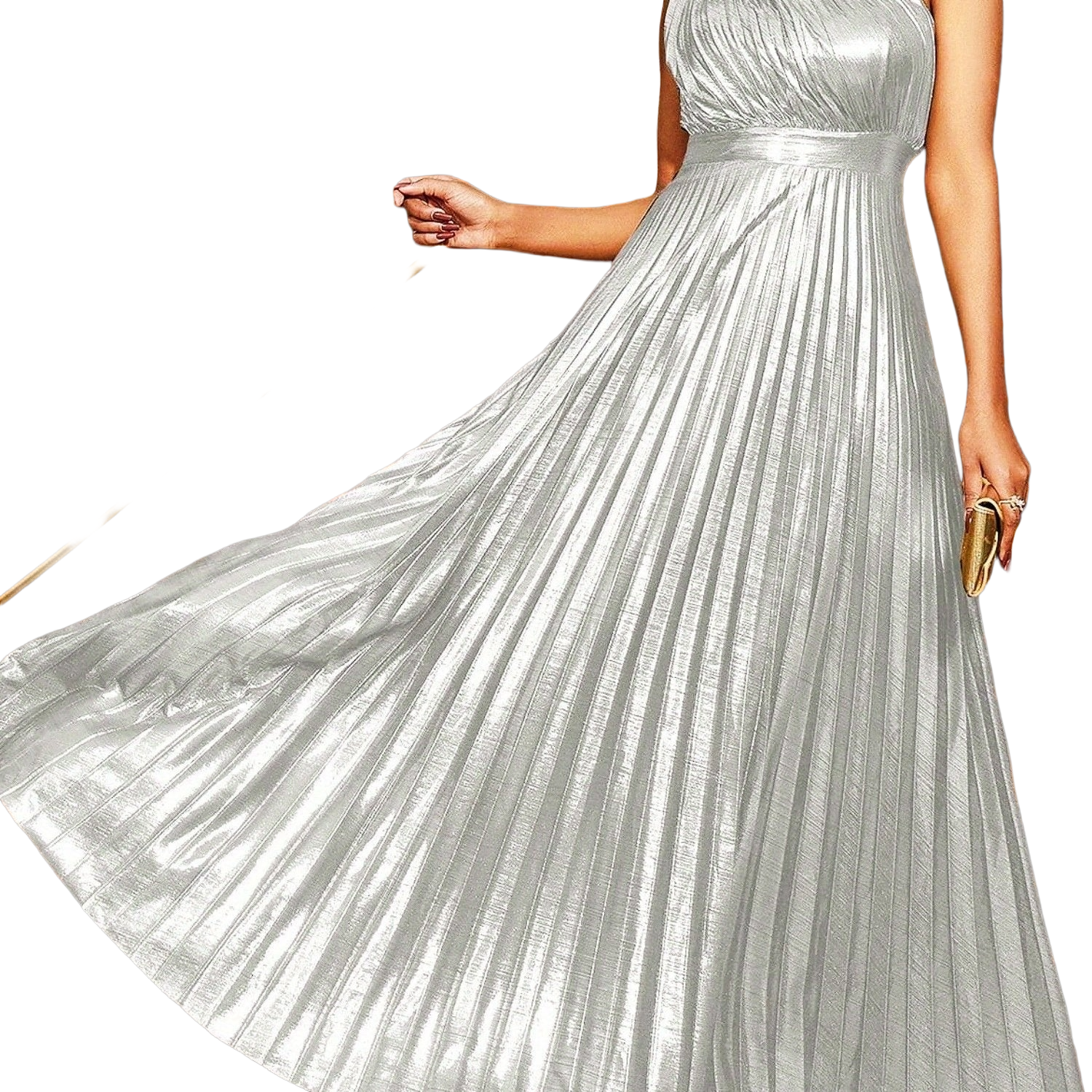 Design: One-shoulder neckline, pleated skirt.
