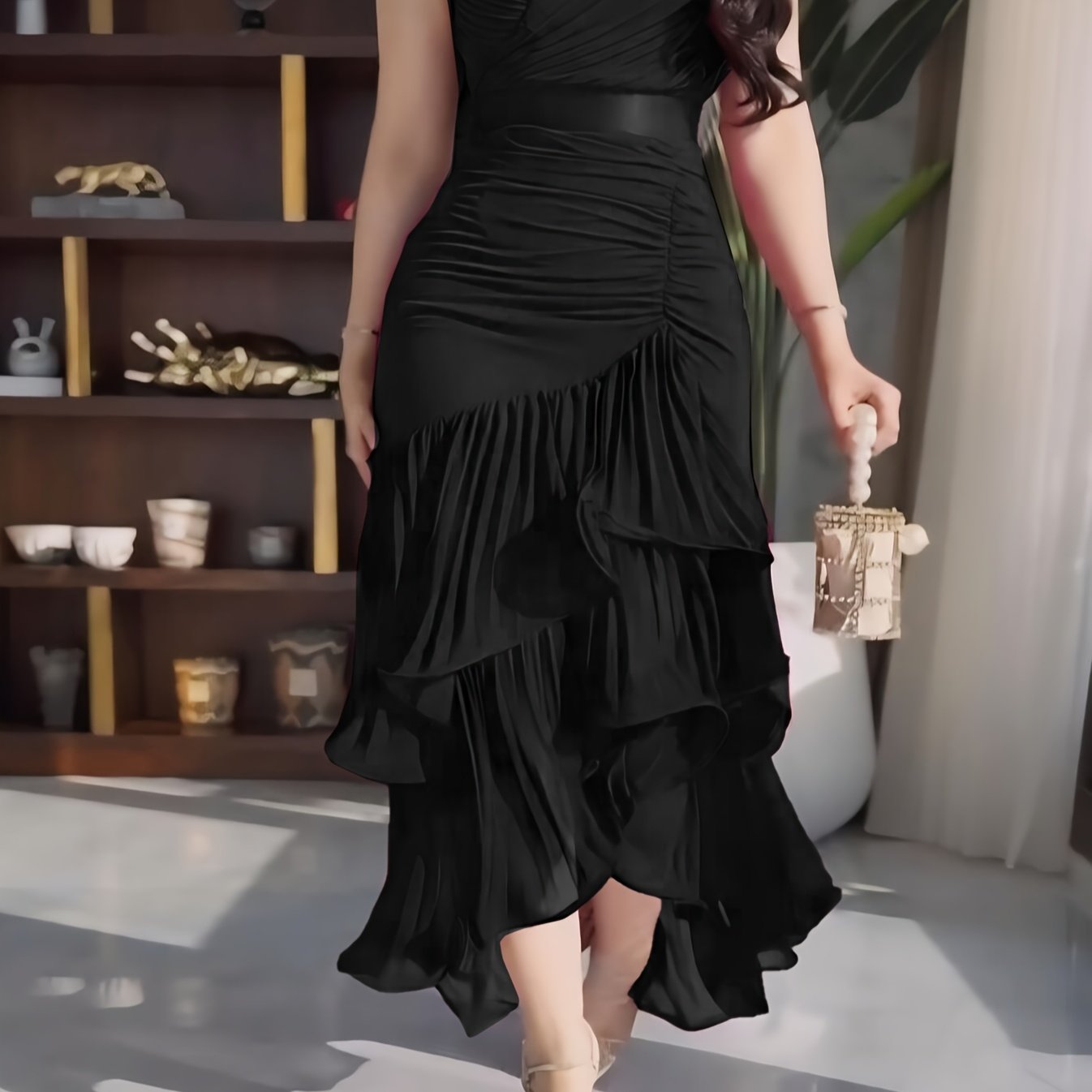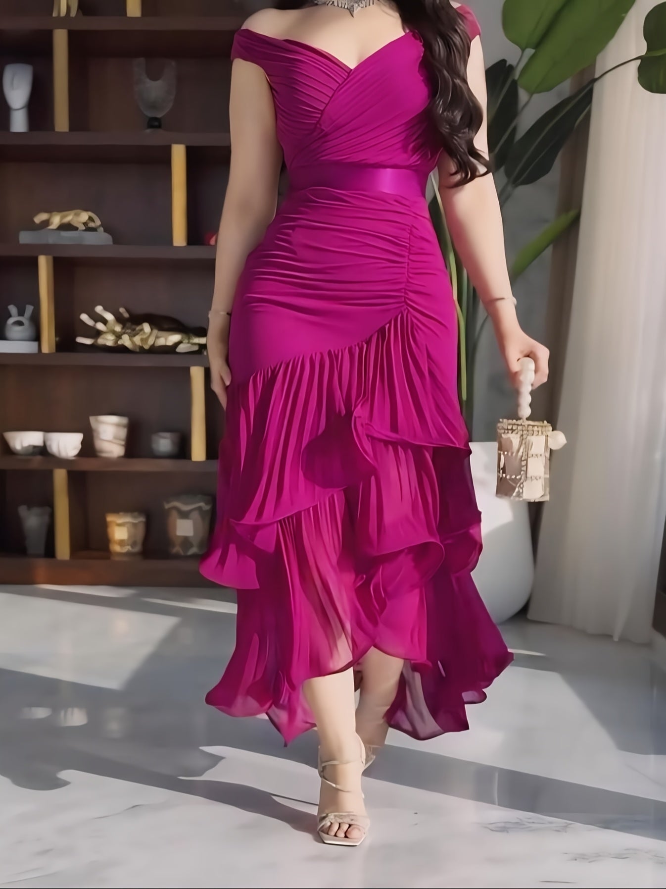 This elegant maxi dress is crafted from 100% polyester knit fabric with no elasticity, providing a structured and comfortable fit. The strapless, fitted design creates a classic and sophisticated look, making it a perfect choice for any formal event, all year round.