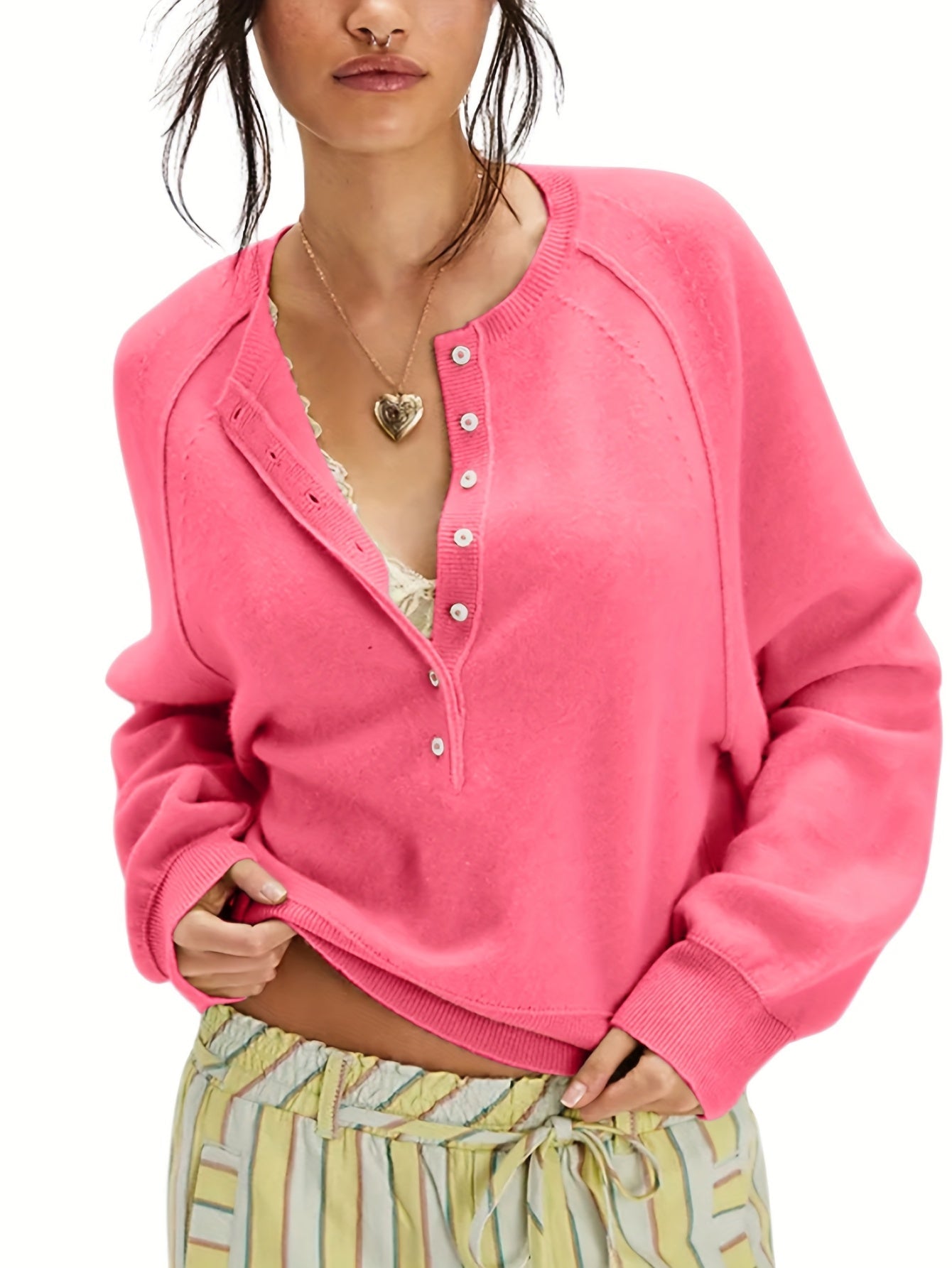 The Vibe: A soft, oversized, and versatile Henley-style pullover sweater.